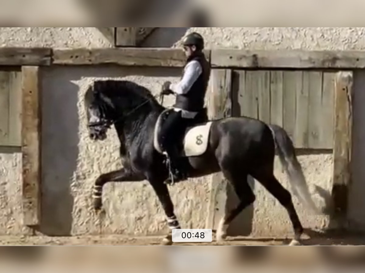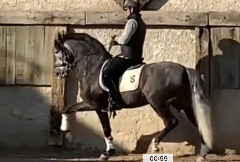 Dit sportpaard is pas 1,5 jaar in training en was zo makkelijk in alle basics. Hij heeft een groot talent voor reünie en veel kracht. Zijn superkarakter maakt het mogelijk om al te spelen met eerste dressuuroefeningen zoals travers, renvers, trasversales en het voorbereiden van oefeningen voor pirouettes. Hij leerde het vliegen zo snel veranderen dat hij al zonder fouten aan beide handen verandert. Je kunt zelfs enkele bewegingen zien die zijn gemak voor passage laten zien en we beginnen met de voorbereidingen voor piaffe op de grond. Een paard dat erg leuk is om getraind en voorbereid te worden op de competitie tot aan de Grand Prix.
