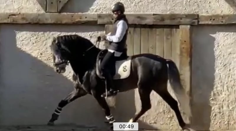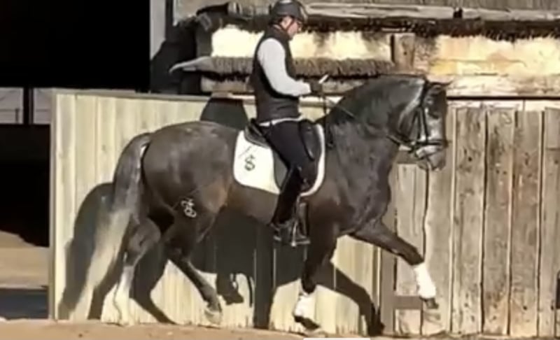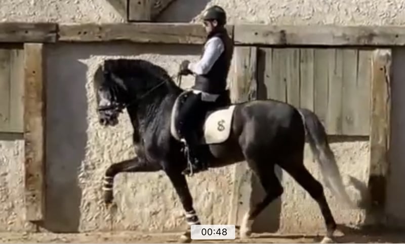 Ten koń sportowy ma zaledwie 1,5 roku treningu i był tak łatwy we wszystkich podstawach. Ma wielki talent do ponownego zjednoczenia i dużo siły. Jego super postać pozwala już na zabawę z pierwszymi ćwiczeniami ujeżdżeniowymi, takimi jak trawers, renvers, trasversales i przygotowanie ćwiczeń do piruetów. Nauczył się latających zmian tak szybko, że już się zmienia bez błędów na obu rękach. Widać nawet pewne ruchy pokazujące jego łatwość przejścia i zaczynamy przygotowania do piaffe na ziemi. Koń, który świetnie się bawi trenować i przygotowywać do zawodów aż do Grand Prix.