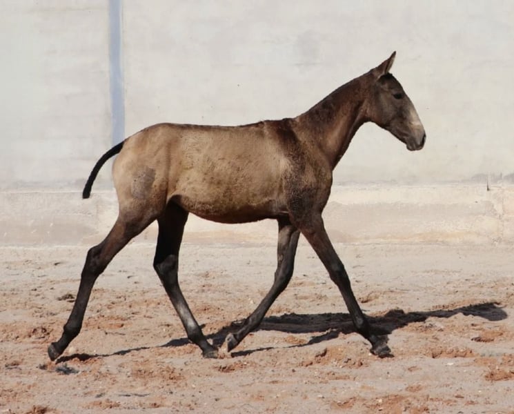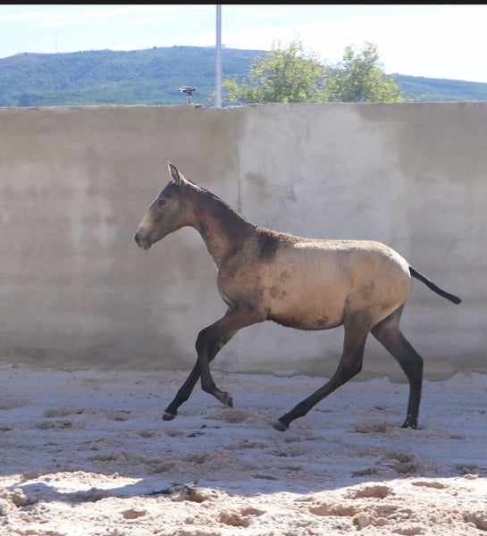 Potente potro destet con excelente pedigree Características: - Raza: Lusitano - Sexo: Macho - Año de nacimiento: 2025 - Color: Buckskin - Altura: Altura final estimada 164 cm Potente potro destet con excelente pedigree – ¡directamente del criador! Este semental Lusitano, nacido en abril de 2025, impresiona con su rara y oscura coloración buckskin y su carácter amable y sociable. Ya se muestra muy confiado y claro de mente. Su padre es un semental galardonado en múltiples ocasiones – campeón mundial y europeo en Working Equitation – conocido por su excepcional capacidad de montar, fortaleza nerviosa y su carácter honesto. Estas cualidades las transmite de manera constante a su descendencia. Aunque muchas de sus líneas son exitosas en la tauromaquia, sus descendientes destacan por su carácter equilibrado y su forma sencilla de relacionarse en el día a día. La altura futura se estima en aproximadamente 1,64 m – ideal para jinetes que buscan un caballo deportivo y sensible con excelentes cualidades. Actualmente, VARZIM está creciendo en un hermoso campo, donde puede desarrollarse en paz y recibe la mejor alimentación. En la manada, se muestra extremadamente compatible con otros caballos. Puedo enviar más fotos y videos con gusto si hay interés.