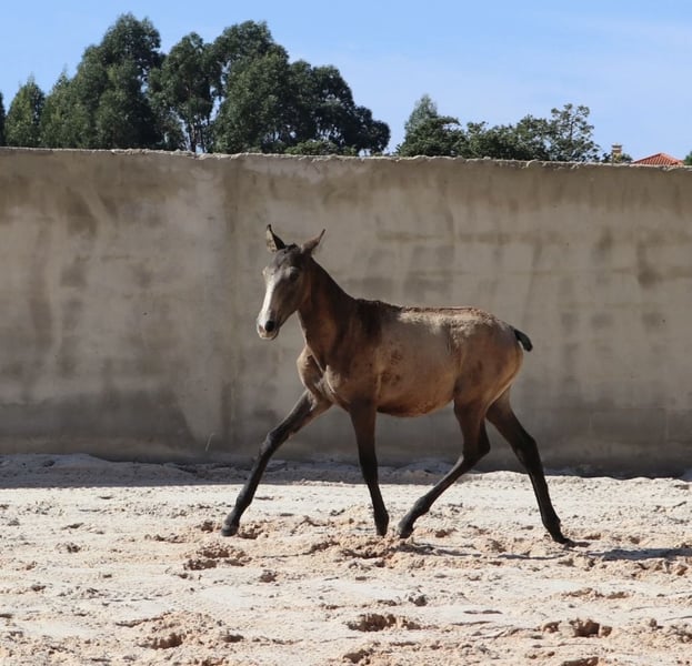 Expressive weanling with top pedigree Features: - Breed: Lusitano - Gender: Stallion - Year of Birth: 2025 - Color: Buckskin - Height: Estimated final height 164 cm Expressive weanling with top pedigree – directly from the breeder! This Lusitano stallion, born in April 2025, impresses with his rare dark buckskin color and his sweet, people-oriented character. He is already very trusting and clear-headed. His father is a multiple award-winning stallion – World and European Champion in Working Equitation – known for his exceptional rideability, strong nerves, and honest nature. He consistently passes these qualities on to his offspring. Although many of his lines are successful in bullfighting, his descendants stand out for their balanced character and uncomplicated nature in daily handling. The future height is expected to be around 1.64 m – ideal for riders looking for a sporty, sensitive horse with excellent potential. Currently, VARZIM is growing up in a beautiful campo, where he can grow peacefully and is provided with the best feed. In the herd, he shows himself to be very sociable with other horses. I can gladly provide more pictures and videos if interested.