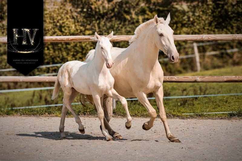 🇵🇹 V Power HV 🇵🇹 Stunning crème-colored stallion born on May 5, 2025, sired by the prestigious pairing of Ouro JLC and Neyge des Ocres (by Campeador CSM). ✨ Highlights ✨ ▪︎ Exceptional temperament, calm and willing ▪︎ Renowned and sought-after bloodlines: Campeador & Riopele ▪︎ Three quality gaits, with bounce, extension, and balance ▪︎ Baroque, expressive, and harmonious conformation ▪︎ Rare and highly desirable crème coat Currently registered with the OC studbook