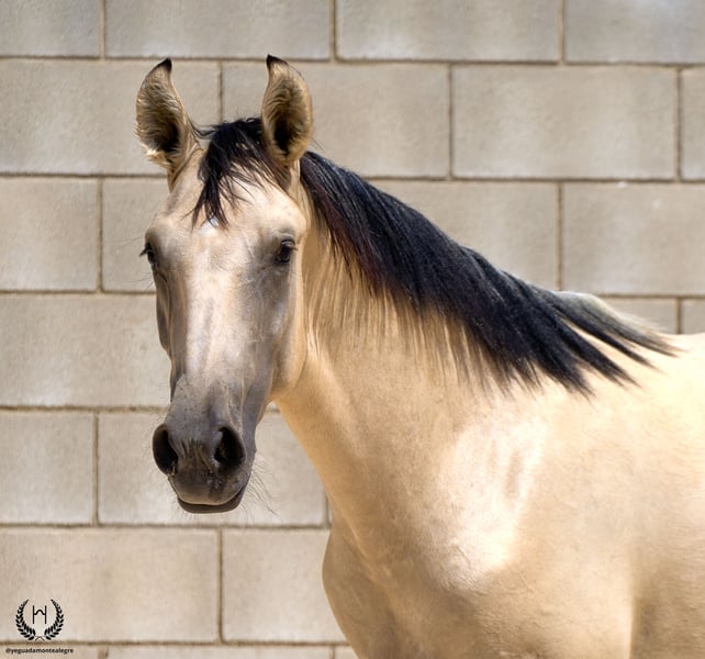 Uranio Monte Alegre 🇵🇹Camada 2024 | Lusitano – Línea Funcional de Doma 🐴 Uranio es un espectacular potro lusitano de capa bayo dorado muy clarito, con cabos negros y una estrella blanca en la frente; crines y cola negras con efecto frosted (escarchado). Nacido el 3 de julio de 2024. Mide 1,55 m a la cruz y destaca por su gran talla y físico barroco, muy racial. Potro muy bien aplomado. Espaldas oblicuas, grupa redonda y una excelente densidad ósea; perfil acarnerado–convexo, súper típico de la raza, con orejas y mirada muy vivas y expresivas. 💪 Con un físico imponente y movimientos armónicos, fluidos y elásticos, Uranio reúne belleza, nobleza y funcionalidad. Será un potro ideal tanto para la doma clásica como para paseos, ocio y disfrute en familia. 🩺 Salud garantizada: aceptamos cualquier prueba veterinaria. Potro desparasitado, con documentación y pasaporte europeo al día. 🔬 Genética de capa: E/x A/a CRcr – Bayo. 🚛 Envíos nacionales e internacionales con empresas especializadas. 📲 Contacto / Contact: 🟢 WhatsApp: +34 639 522 420