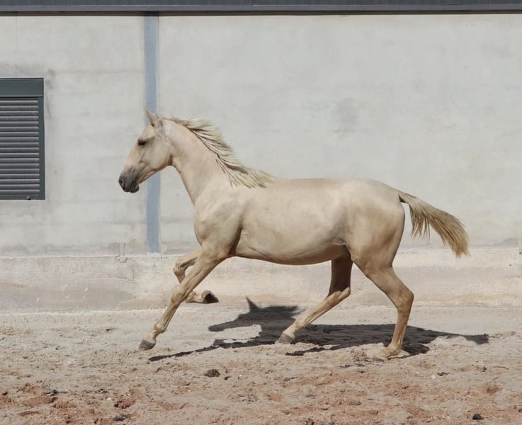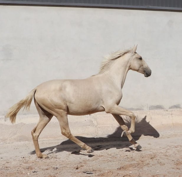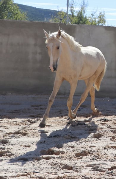 Caballo semental admirable con excelentes aires básicos - Raza: Lusitano - Sexo: Semental - Año de nacimiento: 2022 - Color: Palomino Dun, lo cual es muy raro - Altura: 166 cm, medida final estimada Ofrecemos a la venta un excepcional semental Lusitano nacido en 2022. Este magnífico Palomino no solo destaca por su impresionante apariencia en el color especial Palomino Dun, sino también por su potencial para la Working Equitation. Este joven semental ya muestra prometedoras cualidades para la Working Equitation. El talento para la Working Equitation le fue legado por su padre ADAGIO, quien tuvo éxito en campeonatos europeos y mundiales. Su carácter gentil y su disposición para aprender lo convierten en un compañero ideal para jinetes ambiciosos. Con su noble ascendencia y su cuerpo armónico, es un verdadero atractivo y también posee todas las condiciones para tener éxito en la cría. Puedo enviar más fotos y videos con gusto si hay interés.