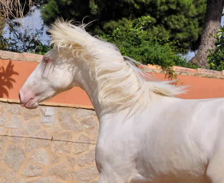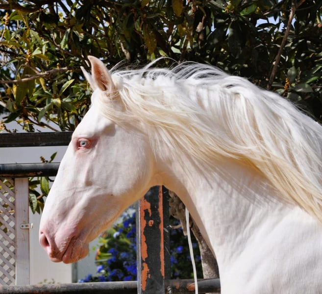 FERRARI DIESEN NAMEN HAT ER NICHT UMSONST 😎 Dieser junge Bub in ALBINO ( Cremello) Lackierung mit strahlend blauen Augen sucht ein neues Zuhause. 50% Lusitano, sein Vater arbeitet hervorragend am Stier, somit PRÄSENTIERT für die WORKING EQUITATION!👌 Hengst, geboren am 11.03.23, für meine Astrofans, darf der schicke Bub im Frühjahr in die leichte Arbeit gehen. Bereits 1.64, DA kommt noch einiges👌 Gerne kann er bei uns noch bis zum Anreiten oder in weiterer Ausbildung bei uns bleiben.. Für Rinderarbeit sind wir Spezialisten.. Sowie Circensik und hohe Schule. Eure Carmen, WhatsApp 0034 670 097 903