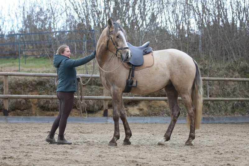 Mein Name ist Ines Jessen, seit ca 12 Jahren bilde ich Pferde in der akademischen Reitweise aus, wobei wir in den letzten Jahren unsere Fühler auch immer mehr in andere Reitweise ausstrecken. Mehrmals im Jahr fliegen wir persönlich nach Portugal und suchen unsere Pferd dort aus. Wir lernen sie über mehrere Tage im Umgang und Verhalten kennen, bevor wir uns zu einem Kauf entscheiden. Bei uns leben sie überwiegen in kleinen Gruppen draußen. Sie lernen den alltäglichen Umgang kennen, das Gelände, die Arbeit auf dem Platz und auch an Seminaren die bei uns auf dem Hof stattfinden, nehmen sie immer wieder teil. Wenn ihr mehr erfahren möchtet, schaut gerne auf unsere Homepage www.reitkunst-iberische-pferde.de Für das persönliche Kennenlernen unserer Verkaufspferde nehmen wir uns ausreichend Zeit für Euch. Neben dem Vorstellen des Pferdes, geben wir Euch einen Einblick in unsere Arbeitsweise und vermitteln diese auch gerne weiter. Hierfür planen wir ca. 1,5 Std. mit Euch ein. Für diesen Zeitaufwand berechnen wir 60 €. (Bei Kauf wird dieser Betrag mit dem Kaufpreis verrechnet.)