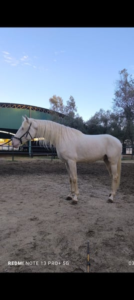 I am selling a 3-year-old and 6-month-old Lusitano foal, standing at 16.1 hands at the withers. He is unblemished, very good-natured, and well-handled. He has been trained ground work and is currently in Sevilla at a riding school. For more information, please contact via WhatsApp at 604905304.