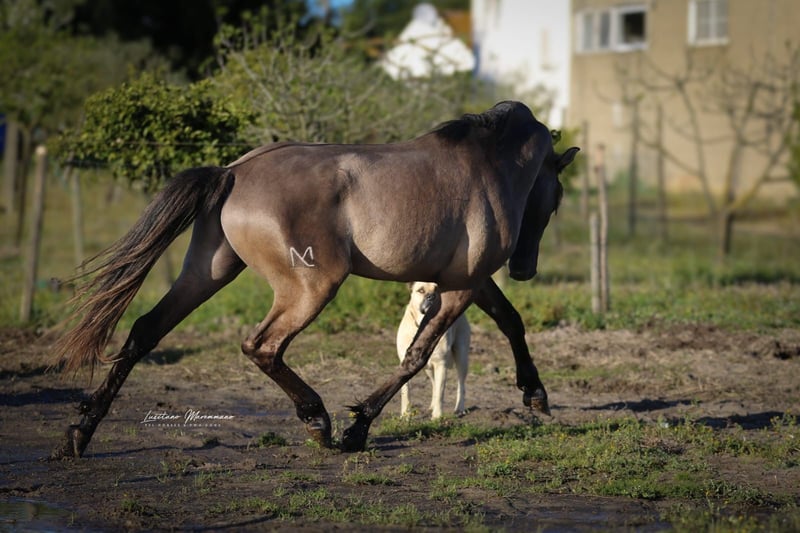 Magnificent Stallion with Beautiful Grey Coat Features: Breed: Luso-Arab (3/4 Lusitano 1/4 Arabian) Gender: Stallion Year of Birth: 2022 Color: Grullo Height: 160 cm, currently, with potential for more growth We are offering an exceptional Lusitano stallion for sale, born in 2022. This impressive young stallion captivates with his rare and fascinating Grullo coloring, making him a true eye-catcher. He presents himself with an elegant and harmonious stature. His noble appearance and friendly, approachable nature make him an ideal partner for ambitious riders and enthusiasts of this noble breed. The stallion shows a willingness to learn and talent, making him a promising candidate for various disciplines. If you are looking for a young, promising Lusitano that impresses both in appearance and personality, then this stallion might be the right horse for you. I can gladly provide additional pictures and videos upon request.