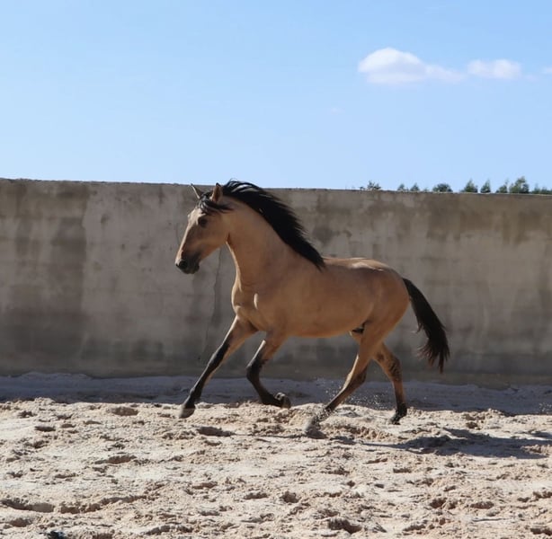 Brilliant dun stallion with excellent basic gaits - Breed: Lusitano - Sex: Stallion - Year of birth: 2022 - Color: dun (genetic test available!) - Height: 166 cm, final height estimated, currently 161 cm We are offering an exceptional Lusitano stallion for sale, who will delight every lover of this noble breed with his impressive characteristics. This young stallion not only impresses with his elegant appearance, but also with his promising potential for dressage and working equitation. His talent for working equitation was passed on to him by his sire ADAGIO, who was successful at European and World Championships. With his noble pedigree and harmonious conformation, he is a real eye-catcher and also has all the prerequisites to be successful in breeding. If you are looking for a Lusitano that impresses with both his beauty and his qualities, then this stallion is the perfect choice. He can now be trained directly by his new owner this year. A real diamond in the rough. I can send you more pictures and videos if you are interested.
