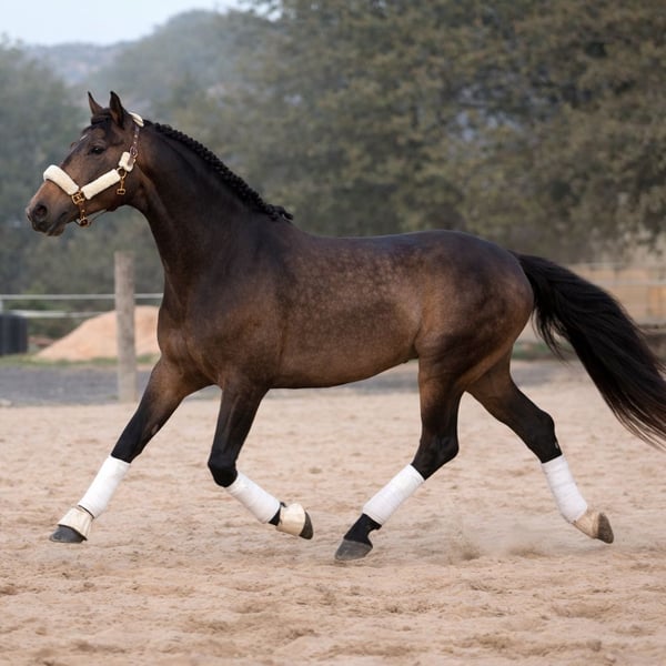 A rare opportunity to acquire a young horse with Grand Prix movement quality at an exceptional price. This 3-year-old Lusitano-type stallion (Passport/DIE) boasts an impressive presence and movements that speak for themselves. - Current Status: Currently in the backing process (desbrave). He is proving to have a "privileged head," taking every new step with calmness and an astonishing willingness to learn. - Gait Quality: Features an exceptional natural balance and an "uphill" canter with a very strong hindleg and great elasticity. - Character: He is a stallion with a very balanced, brave, and attentive temperament. He is extremely noble and trustworthy, even at such a young age. - Potential: A "diamond in the rough" for those seeking a high-end sport horse for Dressage or Working Equitation without the need for breed papers. __________________________________________________________________________________________ Oportunidad para adquirir un potro con calidad de Gran Premio a un precio excepcional. Joven ejemplar tipo Lusitano de 3 años, con un gran físico y movimientos que hablan por sí solos. - Estado actual: En pleno proceso de desbrave. Está demostrando tener una "cabeza" privilegiada, asimilando cada paso con calma y una predisposición al aprendizaje asombrosa para su edad. - Movimientos: Destaca por su equilibrio natural y un galope con tendencia "uphill" (cuesta arriba), mucha fuerza en los posteriores y gran elasticidad. - Carácter: Se encuentra entero y muestra un temperamento equilibrado, valiente y muy atento al jinete. Un caballo muy noble que transmite seguridad desde el primer día. - Valor: Un diamante en bruto para quienes buscan un caballo deportivo de alta gama (Doma Clásica o Equitación de Trabajo) sin la necesidad de carta de raza.