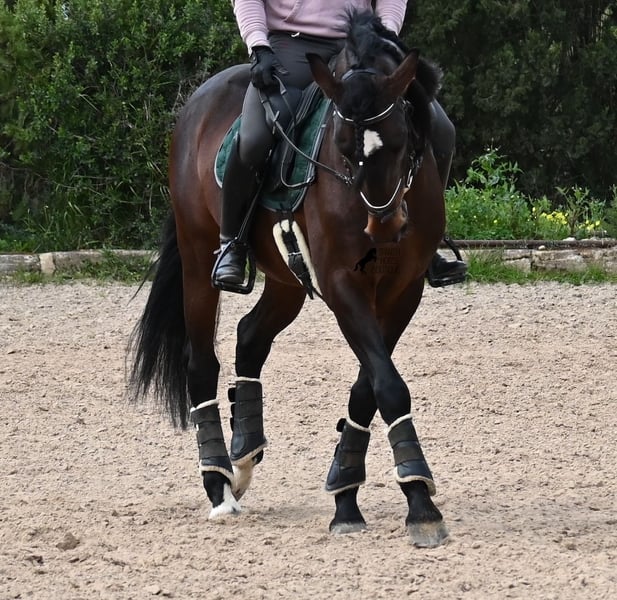 Ce hongre Pura Sangre Lusitano, né en 2021 et avec Livro Azul (papier d'origine des Lusitaniens pur-sang du Portugal), est un véritable trésor au grand cœur. Il suffit de plonger son regard dans ses yeux doux pour ressentir immédiatement à quel point il est affectueux et chaleureux. Malgré son jeune âge, il est incroyablement posé et calme. À chaque instant, il souhaite plaire et faire les choses correctement ! De plus, il est vraiment intrépide et un véritable gentleman, que ce soit en présence de juments ou d'autres hongres. Le jeune cheval est monté avec un mors à double brisure et se déplace sans problème pieds nus. Il apprend déjà à s'étirer et accepte bien le contact avec la main, ce qui le rend facile à monter. Ses mouvements sont également définitivement intéressants pour les cavaliers de dressage ! Son élevage a été idéal, car sur de nombreuses hectares, il a pu simplement être un cheval dans un groupe de hongres, avec plus de 30 jeunes hongres ! Cela se ressent immédiatement, car il a l'esprit clair, intrépide, ouvert et doux. Il y a une option de castration sur place, bien qu'il n'ait définitivement pas de manières de hongre. Actuellement, il mesure 165 cm et va certainement encore grandir en hauteur et en taille ;) Avec son caractère irréprochable, il deviendra avec un peu plus d'entraînement un cheval idéal pour toute la famille. Un test de piroplasmose négatif (sans piro) est également disponible. Le prix pour sa qualité est absolument juste ! Actuellement, il se trouve à Majorque ! Des vidéos et son pedigree sont disponibles sur demande. Je peux organiser sur place une visite vétérinaire, une castration, un débourrage, un transport ou même votre voyage si vous souhaitez venir le voir en personne. Pour plus de détails, n'hésitez pas à consulter ma page ou à en discuter. Salutations d'Espagne !