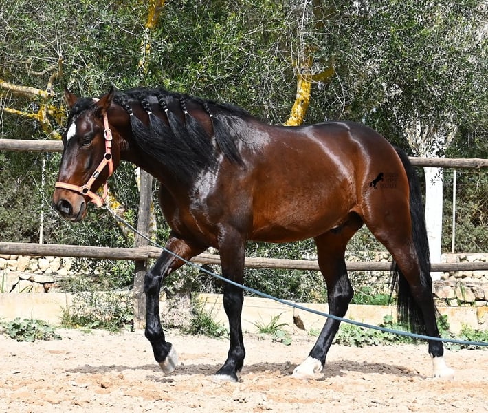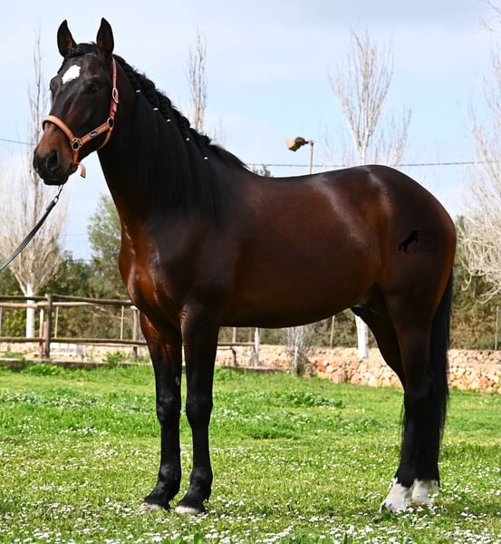 Born in 2021, this Pura Sangre Lusitano stallion with Livro Azul (the original paper of the purebred Lusitanos from Portugal), is a sweet-hearted treasure. You only have to look into his gentle eyes to realize how loving and warm-hearted he is. Despite his tender age, he is incredibly settled and calm. He wants to please and do everything right at every moment! On top of that, he is really fearless and a true gentleman, whether in the presence of mares or other stallions. The youngster is ridden on a double broken water snaffle and runs barehoof without any problems. He is already learning to stretch nicely and accepts contact with the hand well and is easy to ride. His movement is also definitely interesting for dressage riders! His upbringing was also ideal, as he was allowed to be a horse on many hectares of land in the stallion group with over 30 young stallions! You notice this immediately, because he is so clear-headed, fearless, open and gentle. There would be the option of castration on site, although he definitely has no stallion manners. He currently measures 165cm and will definitely grow in height and size ;) With his impeccable conformation, he will also be an ideal horse for the whole family with a little more training. A negative piroplasmosis test (piro-free) is also available. The price for his quality is absolutely fair! He is currently stabled in Mallorca! Videos and pedigree available on request. I am happy to organize an AKU, castration, riding, transport or even your trip, should you come to see him in person. Details can be found on my website or in conversation. Saludos from Spain