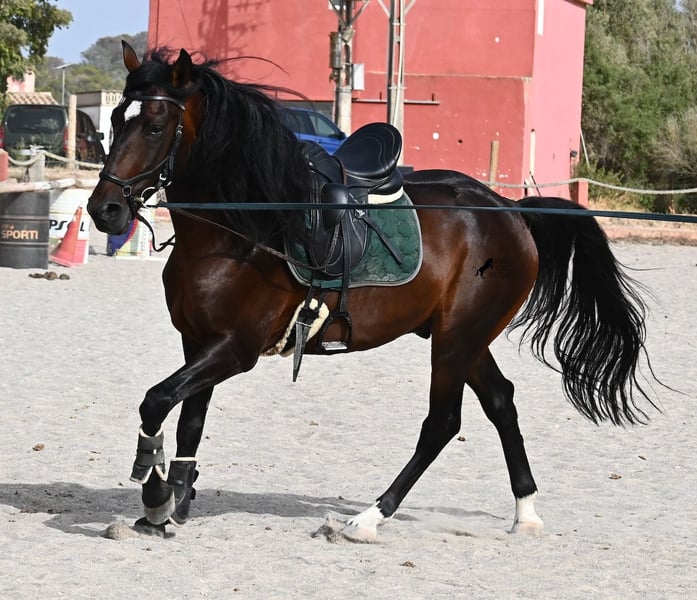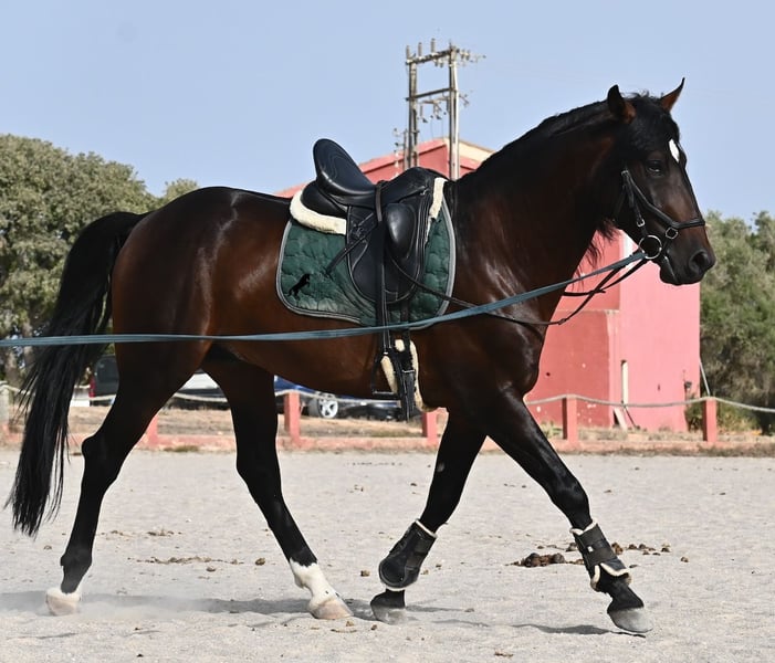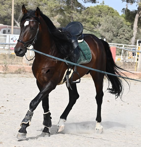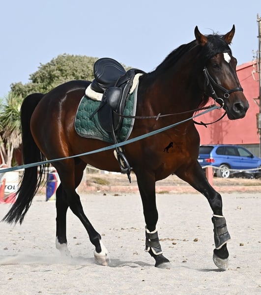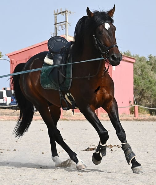 Ce hongre Pura Sangre Lusitano, né en 2021 et avec Livro Azul (document original des Lusitaniens pur sang du Portugal), est un véritable trésor au grand cœur. Il suffit de regarder dans ses yeux doux pour ressentir immédiatement à quel point il est affectueux et chaleureux. Malgré son jeune âge, il est incroyablement posé et calme. À chaque instant, il souhaite plaire et bien faire ! De plus, il est vraiment intrépide et un véritable gentleman, que ce soit en présence de juments ou d'autres étalons. Le jeune cheval est monté avec un mors à double brisure et se déplace sans problème pieds nus. Il apprend déjà à s'étirer correctement et accepte bien le contact avec la main, ce qui le rend facile à monter. Son mouvement est également définitivement intéressant pour les cavaliers de dressage ! Son élevage a été idéal, car sur de nombreuses hectares, il a pu simplement être un cheval dans un groupe d'étalons, avec plus de 30 jeunes étalons ! Cela se ressent immédiatement, car il est mentalement très clair, intrépide, ouvert et doux. Il y a une option de castration sur place, bien qu'il n'ait définitivement pas de manières d'étalon. Actuellement, il mesure 165 cm et continuera certainement à grandir en hauteur et en taille ;) Avec son tempérament irréprochable, il deviendra avec un peu plus d'entraînement un cheval idéal pour toute la famille. Un test de piroplasmose négatif (sans piro) est également disponible. Le prix pour sa qualité est absolument juste ! Actuellement, il se trouve à Majorque ! Des vidéos et son pedigree sont disponibles sur demande. Je peux organiser sur place une visite vétérinaire, une castration, un débourrage, un transport ou même votre voyage si vous souhaitez venir le voir en personne. Pour plus de détails, n'hésitez pas à consulter ma page ou à en discuter. Salutations d'Espagne !