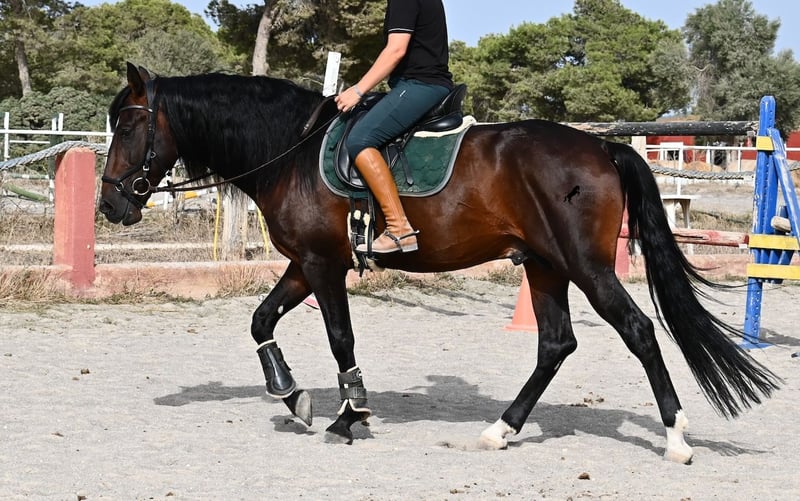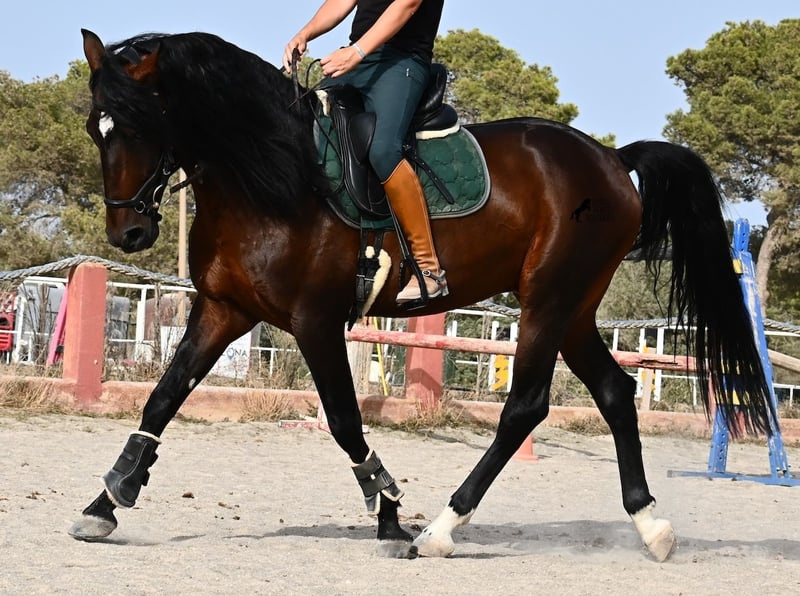 This 2021-born Pura Sangre Lusitano stallion with Livro Azul (original papers of the purebred Lusitanos from Portugal) is a heartwarming treasure. One only needs to look into his gentle eyes to immediately feel how loving and affectionate he is. Despite his young age, he is incredibly composed and calm. At every moment, he wants to please and do everything right! Moreover, he is truly fearless and a real gentleman, whether in the presence of mares or other stallions. The young horse is ridden in a double-jointed snaffle and goes barefoot without any issues. He is already learning to stretch beautifully and accepts contact with the hand well, making him easy to ride. His movement is definitely interesting for dressage riders! His upbringing has also been ideal, as he has had the opportunity to simply be a horse in a group of over 30 young stallions on many hectares of land! This is evident, as he is mentally clear, fearless, open, and gentle. There is the option for castration on-site, although he definitely does not exhibit stallion behavior. Currently, he measures 165 cm and will definitely grow taller and fill out ;) With his impeccable temperament, he will also become an ideal horse for the whole family with a bit more training. A negative piroplasmosis test (piro-free) is also available. The price for his quality is absolutely fair! He is currently located in Mallorca! Videos and pedigree are available upon request. I would be happy to arrange an AKU (veterinary examination), castration, training, transport, or even your travel arrangements if you wish to come see him in person. Details can be found on my page or in conversation. Greetings from Spain!