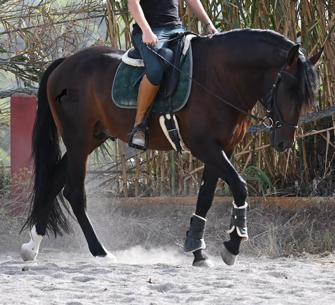 Dieser 2021 geborene Pura Sangre Lusitano Hengst mit Livro Azul (Orignalpapier der reinrassigen Lusitanos aus Portugal), ist ein herzensguter Schatz. Man muss nur in seine sanften Augen sehen und spührt sofort, wie liebevoll und herzlich er ist. Trotz seines zarten Alters, ist er unglaublich gesetzt und ruhig. In jedem Moment will er gefallen und alles richtig machen! Obendrein ist er wirklich unerschrocken und ein wahrer Gentleman, egal ob in Gegenwart von Stuten oder anderen Hengsten. Geritten wird der Youngster auf einer doppelt gebrochenen Wassertrense und läuft problemlos barhuf. Er lernt schon schön sich zu strecken und akzeptiert den Kontakt zur Hand gut und ist einfach zu reiten. Seine Bewegung ist auch definitiv interessant, für Dressurreiter! Die Aufzucht war auch ideal, denn auf vielen Hektar Land, durfte er einfach Pferd sein in der Hengstgruppe, mit über 30 Junghengsten! Das merkt man auch sofort, denn er ist im Kopf sowas von klar, unerschrocken, offen und sanft. Es bestünde die Option der Kastration vor Ort, obwohl er definitiv keine Hengstmanieren hat. Aktuell misst er 165cm und wird definitiv noch in die Höhe und Maße wachsen ;) Mit seinem einwandfreien Interieur, wird er mit etwas mehr Training auch ein ideales Pferd für die ganze Familie. Ein negativer Piroplasmosetest (pirofrei) liegt ebenso vor. Der Preis für seine Qualität ist absolut fair! Aktuell steht er auf Mallorca! Videos und Abstammung gerne auf Anfrage. Gerne organisiere ich vor Ort eine AKU, Kastration, Beritt, Transport oder auch ihre Reise, sollten Sie persönlich zum Anschauen kommen. Details dazu gerne auf meiner Seite oder im Gespräch. Saludos aus Spanien