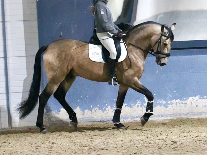 Unregistered Lusitano buckskin horse, born in 2019, with great character and potential, he stands out for his elegance and versatility. With a height of 1.63 m, it combines a harmonious physique with an exceptional character, making it suitable for any type of rider, including children and beginners. It is at an intermediate level of training, performing flying changes with ease, and demonstrating great potential to continue progressing in its training. Its rideability, combined with its noble and calm nature, makes it a perfect horse for enjoying daily riding as well as for those looking for a partner with potential for amateur-level dressage. With X-rays available and free from piroplasmosis, this horse not only stands out for its functional quality but is also a safe investment for those seeking a trustworthy and good-natured horse. It is a true gem, ready to shine in any discipline.