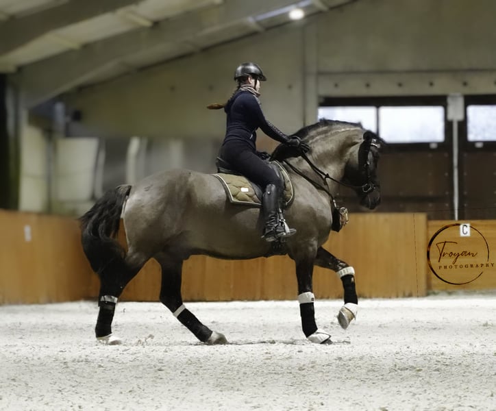 Montañés is born 2018 and showing an enormous talent under the saddle! At his 4 years he is performing all lateral movements with super balance and focus on his work. He is standing 165cm and yet not finished growing. https://youtu.be/yoXdcAt-K2k Montañés is a Lusitano with passport registered in ANCADES stud book. 32 Perfect X -Rays & Piroplasmosis Negative. Extraordinary intelligent and playful young stallion with a promising future under the saddle. If you want to add a bit of special coat to your foals he is the best choice, caring the DUN gene responsible for zebra stripes on legs.