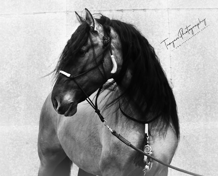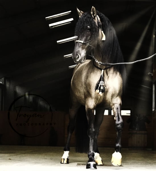 Montañés är född 2018 och visar en enorm talang under sadeln! Vid sina 4 år utför han alla sidorörelser med superbalans och fokus på sitt arbete. Han står 165 cm och är ännu inte färdigvuxen. https://youtu.be/yoXdcAt-K2k Montañés är en Lusitano med pass registrerat i ANCADES stambok. 32 Perfekt röntgenstrålar & piroplasmosis negativ. Extraordinär intelligent och lekfull ung hingst med en lovande framtid under sadeln. Om du vill lägga till lite speciell päls till dina föl är han det bästa valet och bryr sig om DUN-genen som är ansvarig för zebraränder på benen. För mer information kontakta oss på 34 692 43 52 55 eller 32 471 37 48 76