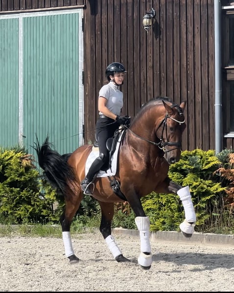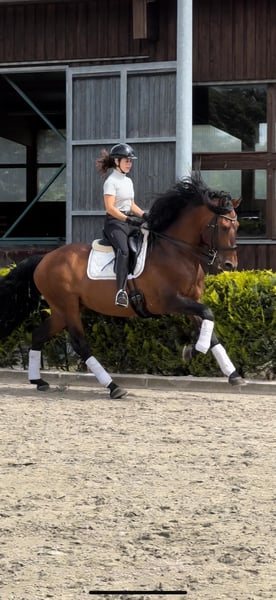 Duende ist ein 8-jähriger Hengst mit einem PSL-Vater und einer PRE-Mutter aus der berühmten Zucht "Bohorquez” in Spanien. Was ihn von anderen iberischen Pferden unterscheidet, ist, dass er für den Stierkampf zu Pferd gezüchtet wurde. Er ist elastisch, schnell, äußerst aufmerksam und immer im Gleichgewicht, bereit, Ihre Befehle auszuführen. Duende hat einen außergewöhnlichen Charakter, ein Anfänger kann ihn ohne Probleme reiten und galoppieren (Videos verfügbar). Auf dem Feld ist er ruhig, er ist ein Pferd, das alles richtig machen will und bei jedem Ritt 300 % gibt. Er hat eine große Begabung für Piaffe, Passage und Ausdehnungs- und Sammelübungen. Er ist ein Meisterpferd, das Ihnen auf feinfühlige Weise beibringt, wie man die Hilfen setzt, und Ihnen auch Fehler erlaubt. Er ist eher temperamentvoll als faul, aber ohne übermäßig elektrisch zu sein, reagiert schnell auf Hilfen, geht vor dem Bein und ruft Sie immer, wenn Sie an seiner Box vorbeigehen. Er ist erst 8 Jahre alt und hat einen außergewöhnlichen Kopf, ein Pferd, an dem man viele Jahre Freude haben wird. Er ist sehr sanft in der Hand, macht die Übungen mit Trensenzaum, ist sehr leicht zu handhaben, hat keinen Hengstcharakter und verfügt über gute Röntgenbilder des gesamten Körpers. Videos und weitere Informationen auf Anfrage.