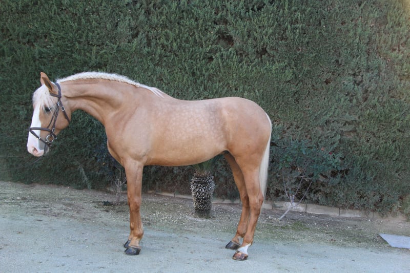 Dieser wunderschöne Anglo-Lusitano-Hengst sucht sein neues Zuhause für immer! 7 Jahre alter Hengst + 170cm Er hat ein imposantes Aussehen, gute Gänge und außergewöhnliches Talent. Seine Anglo-Lusitano-Rasse gibt ihm das Beste aus beiden Rassen, die Widerstandsfähigkeit und den Charakter und die guten Bewegungen und Elastizität der lusitanischen Rasse. Auf mittlerem Niveau geritten, verfügt Bambú über drei großartige Gangarten, einen breiten Schritt, einen hohen und elastischen Trab und einen eleganten und kadenzierten Galopp mit viel Amplitude und Kraft. Ausgebildet in spanischem Schritt, Piaffe und Passage macht er Spaß beim Reiten, ist an die Arbeit auf der Bahn gewöhnt und ein ausgezeichneter Begleiter im Gelände. Eine gute Wahl für Reiter, die ein elegantes Pferd mit einer besonderen Farbe suchen, mit dem sie Spaß haben und sich auf die nächsten Stufen der Dressur weiterentwickeln wollen.
