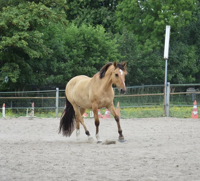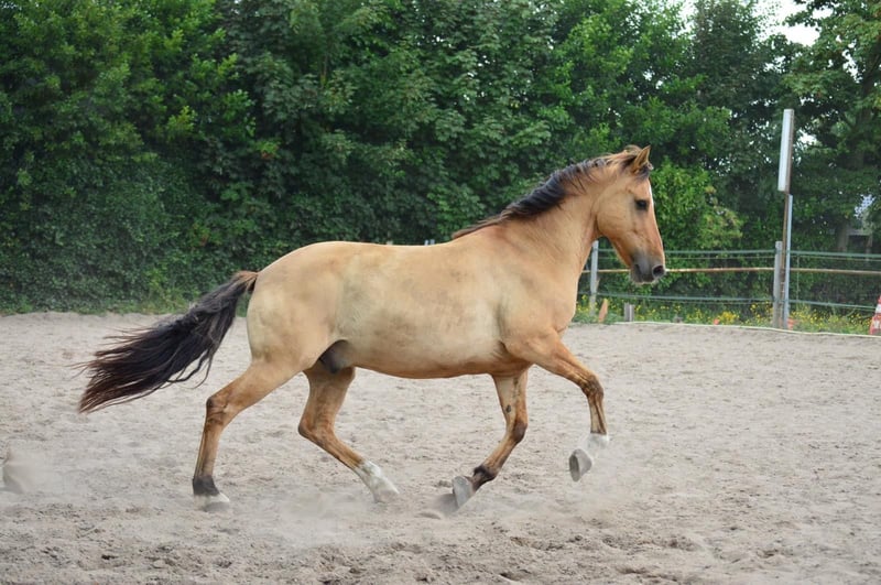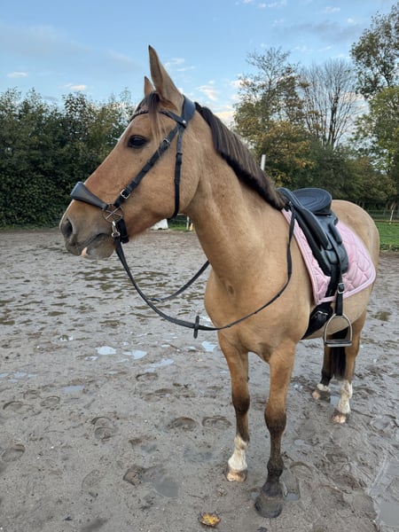 Na lang twijfelen bied ik mijn paard te koop aan: 🐴 Fuego, 10-jarige andalusiër x Lusitano ruin ✨ Naam: Fuego ✨ Leeftijd: 10 jaar ✨ Ras: Andalusiër kruising lusitano ✨ Geslacht: ruin ✨ Stokmaat: ca. 1.60 m ✨ Kleur: valk wildkleur Fuego is een prachtige en werkwillige Lusitano-Andalusiër kruising met een eerlijk en mensgericht karakter. Hij is vroeger (licht) bereden geweest en wordt nu opnieuw rustig opgepakt onder het zadel. Ik heb nog niet vaak met hem gereden maar het gaat elke keer steeds beter. Ik rij hem zelf bitloos dit doet hij heel braaf en fijn. Hij heeft bij mij geen gekke dingen gedaan. Hij heeft mooie gangen en veel springvermogen. In de omgang is hij heel lief maar heeft wel iemand nodig die sterk in zijn/haar schoenen staat. Hij kan soms nog wat onzeker zijn dus heeft iemand nodig die hem vertrouwen geeft. Hij leert snel en vindt hij het leuk om bezig te zijn met vooral grondwerk, spelen en vrijheidsdressuur dit doet hij enthousiast mee. Ook heb ik hem vaker laten vrijspringen en hij rent vaak uit zichzelf op de sprong af omdat hij dit erg leuk vind en hij kan ook heel goed springen. Onder het zadel is dit bij mij nog niet gedaan. Hij heeft geen problemen (ook niet in het verleden) en is laatst door een osteopaat behandeld die niks raars heeft gevoeld/gezien. Momenteel staat hij 24/7 in een uitloop met andere paardjes (wel met een 0 gram dekentje omdat hij niet in de schuilstal durft/wil en anders alleen maar in de regen staat). Hij is sociaal naar andere paarden. Hij kan ook in een stal maar wel met paarden om zich heen. De reden waarom ik hem verkoop is omdat we niet helemaal goed bij elkaar passen, waardoor ik hem niet kan bieden wat hij verdiend. Ik hoop iemand te vinden die perfect bij hem past en wel een goede klik met hem heb. 🔎 Wat ik zoek voor hem: Een plek waar hij veel buitenkomt en ik denk dat het beste voor hem is een rustig plekje met een rustig, consequent persoon die ervaring heeft met gevoelige paarden en Fuego vertrouwen en duidelijkheid kan geven. Een plek waar hij niet meer weg hoeft en lekker recreatief aan de slag kan. Hij wordt enkel verkocht aan een passend en verantwoord thuis. Verkoop is nog niet definitief; ik zoek een eigenaar die aansluit bij zijn/haar behoeften en karakter. Gaat alleen weg als de klik met de nieuwe eigenaar goed voelt 💰 Prijs: gemiddelde prijsklasse incl een paar spullen 📍 Locatie: Berkel en Rodenrijs Zuid-Holland Voor interesse of meer vragen kunt u mij een pb sturen.