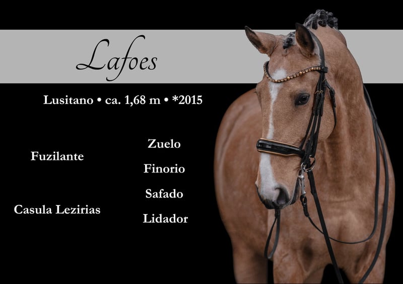 Liebe Interessenten, Für Terminvereinbarungen Probereiten senden Sie mir bitte eine WhatsApp. Für weitere Fragen bin ich tagsüber per WhatsApp erreichbar, telefonisch erreichen Sie mich am Besten zwischen 16 und 19 Uhr. Ich freue mich auf eine Kontaktaufnahme www.angelina-devittorio.de ⭐️Lafoes⭐️ Alter: 10 Jahre (2015) Größe: ca 1,68 m Abstammung: Fuzilante x Safado Ausbildungsstand: M / S Niveau AKU: Gute Röntgenbilder vorhanden Bildschöner Lusitano-Wallach in der begehrten Buckskin-Farbe sucht ein neues, liebevolles Zuhause. Dieser außergewöhnlich charmante und freundliche Wallach möchte stets gefallen und überzeugt durch sein angenehmes Wesen und Go sowie seine Leistungsbereitschaft. Er ist solide auf M-Niveau ausgebildet und hat bereits mit den Lektionen der Klasse S, wie Serienwechseln und Pirouetten, begonnen. Besonders talentiert zeigt er sich in Piaffe und Passage. Im Gelände ist er absolut zuverlässig, sowohl alleine als auch in der Gruppe, und kennt auch die Aufgaben der Working Equitation wie zum Beispiel die Brücke. Seit sieben Jahren befindet er sich in einer Hand und wird nun schweren Herzens in beste Hände abgegeben. War immer in bester Betreuung und Ausbildung Aktuelle, gute Röntgenbilder liegen vor. Er hat keinerlei Vorerkrankungen und war stets fit und gesund. Ein echter Herzenspferd für Reiter, die Eleganz, Charakter und Rittigkeit zu schätzen wissen. ⚜️Tel: 0171-3438949 ⚜️a.devittorio@web.de ⚜️https://www.ehorses.de/angelinadevittorio Facebook und Instagram Angelina De Vittorio