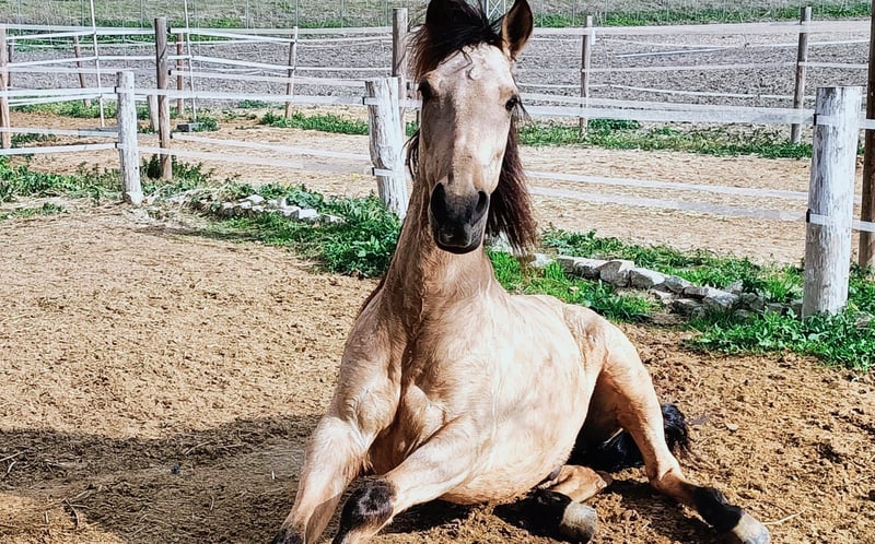 Apolo ist ein sehr aufgewecktes kleines und kompaktes Pferd mit wunderschöner Fellfarbe, sehr wachsam, clever aber manchmal ein Sturkopf. Wenn er zu dir Vertrauen gefasst hat, ist er verschmust, lernwillig und anhänglich. Er ist barhuf unterwegs was ihm keine Probleme bereitet. Er ist exzemfrei und überhaupt ein sehr robuster Bube. Mit ihm wurde hauptsächlich am Boden gearbeitet. Er ist auch eingeritten, reagiert ganz fein auf Hilfen und ist ein Pferd mit ausgeprägtem Vorwärtsdrang. Apolo ist absolut kein Anfängerpferd, braucht eine einfühlsame, klare konsequnze Führung und ausgewogene, regelmässige Beschäftigung. In der Herde zeigt er sich oft verunsichert und eher rangniedrig. Apolo lebt auf einer Finca im Jerez de la Frontera, die von meiner Schweizer Freundin geführt wird. Mein Bube wird nur an einen sehr guten Platz verkauft. Bei Fragen, erreicht Ihr mich unter der Nummer ±41 79 416 79 13 Silvia Kaufmann