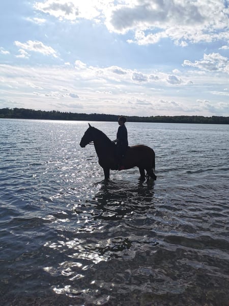 Hallo, zum Verkauf steht mein feiner und motivierter Lusitano Wallach. Seit 4 Jahren haben wir in praktisch allen Bereichen Unterricht genommen. Bodenarbeit, Dressur, Springen & Gelände. Er befindet sich auf einem soliden A- Niveau. Er ist 1,57 m, jetzt offiziell 14 Jahre und eher schmal gebaut. Reitergewicht sollte nicht über 70 kg sein. Er ist immer bemüht und sehr auf seinen Menschen bezogen, trotzdem braucht er einen sicheren Reiter. Typische Spanische Gänge, gut zu sitzen, leicht zu reiten, Aktive Beine Schmied und Verladen Problemlos. 1x jährlich Geimpft, Zähne gemacht, Sättel aufgepolstert und Osteo-behandelt. Ich wünsche mir einen guten Platz mit viel Auslauf für ihn. Zubehör gebe ich gern auf Verhandlungsbasis komplett mit dazu. Komplette Springausrüstung in Braun. Prestige Springsattel, Trense usw. Dressursattel Prestige Milano neuwertig &Trense schwarz. Regendecke, Winterdecke, Abschwitzdecke,Gamaschen usw Aktuell steht er in Großpösna zum Kennenlernen. Wird nicht an Anfänger, Kinder oder Schulbetriebe verkauft. Bei Fragen oder Interesse einfach melden :)