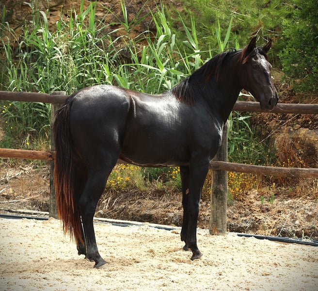 A healthy black gelding with excellent pedigree, featuring old bloodlines.