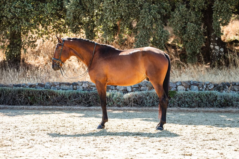 Magnifique Lusitanien de grande taille. Shakur a un caractère très doux. Il montre un excellent galop en montée et sa démarche est souple et correcte, avec un beau débordement. Conviendrait pour le dressage.