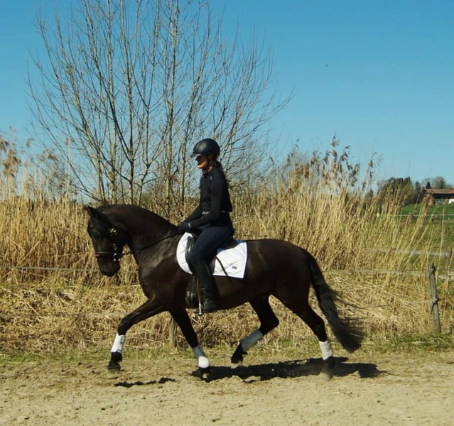 Zum Verkauf steht ein sehr braver, vierjähriger Lusitano in edler schwarzer Farbe. Er begeistert nicht nur durch seine elegante Erscheinung, sondern auch durch seinen freundlichen und ausgeglichenen Charakter. Im Umgang ist er sehr lieb, menschenbezogen und unkompliziert. Ob beim Putzen, Führen oder im täglichen Stallalltag – stets zeigt er sich brav und angenehm. Er wurde in Deutschland schonend angeritten und präsentiert sich unter dem Sattel gelassen, aufmerksam und lernwillig. Besonders hervorzuheben sind seine sehr guten Grundgangarten mit viel Takt, Schwung und natürlicher Balance. Mit seinem lieben Wesen und seiner täglichen positiven Art bereitet er uns jeden Tag große Freude. Ein junger Lusitano mit Qualität, Herz und großem Potenzial – ideal für Reiter, die ein besonderes Nachwuchspferd suchen. Bei ernsthaftem Interesse freuen wir uns über eine Nachricht oder einen Anruf unter +49 175 4159525 Weitere Informationen, Bilder und Videos gerne auf Anfrage. Wir haben zudem weitere Lusitanos in verschiedenen Preiskategorien, Farben und Ausbildungsständen im Angebot. Für Probereiten verlangen wir 50 €, diese werden natürlich gut geschrieben bei Kauf