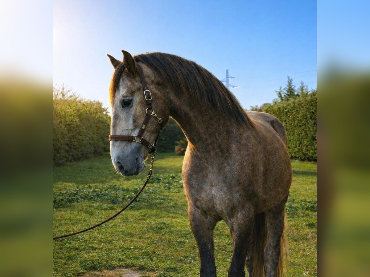 SENSATO, an elegant roan Lusitanian gelding born in 2022, aged 4 years and approximately 1.64 m tall, is a young dressage horse for sale. He is suitable for a rider looking for a well-balanced, correctly broken horse with promising aptitude for flatwork. With a harmonious and functional build, SENSATO exhibits a balanced sporting conformation, characterized by suppleness, lightness, and natural movement. Well-proportioned, he demonstrates correct movement and a willing attitude during work, while remaining easy and honest in his reactions. A calm and cooperative gelding, SENSATO possesses an excellent temperament. He is attentive, focused, and respectful, making him a pleasant partner for a calm and consistent rider who wishes to develop a young horse gradually and under good conditions. His temperament facilitates learning and indicates a smooth progression in dressage training. Under saddle, SENSATO is broken to all three gaits. He displays a quality trot, balanced and cadenced, with good scope and coordination. His canter is fluid and regular, and his walk is correct and elastic. At this stage, he is in the process of establishing and consolidating his basics, with a promising potential for further development in an evolving dressage project. SENSATO benefits from recognized Lusitanian bloodlines, oriented towards work, mental availability, and functionality. On his sire’s side: JUNCO da Repoula, a Lusitanian stallion appreciated for passing on balance, suppleness, and a cooperative mind. On his dam’s side: I PANEMA, daughter of SOL, a lineage known for strength, consistency, and aptitude for mounted work. A typical Lusitanian blood combination, producing pleasant, versatile, and durable horses in their development. Why choose SENSATO? - Well-balanced young Lusitanian gelding with a good mind - Correctly broken to all three gaits - Calm, obedient, and cooperative temperament - Quality trot and natural balance - Solid foundations for an evolving dressage project - Clear and straightforward health monitoring Ideal for a rider wanting to train a young horse with method and patience.