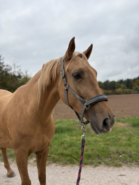 With a heavy heart, we have to part ways with our Nuestro. Nuestro is 4 years old, just over 17 hands tall, and a Lusitanian gelding. He is barefoot and has a bit of a mischievous personality. In handling, he is the greatest treasure you can imagine. He has no bad habits and is somewhat sensitive, but completely fearless. He allows everything to be done with him—grooming, hoof care, hosing, leading, walking, farrier work, and loading are no problem. He walks calmly in all gaits under saddle. He is also familiar with riding out in pairs, and he is very well-behaved as a lead horse. He is ridden by a 10-year-old girl both in the arena and in the field, always looking out for her, which is why we can also see him as a children's horse or for a mother-child pair. However, he is not suitable as a beginner or children's horse due to his age. Nui was a laryngeal whistleer, but this was surgically treated in November. He is now given the time he needs to recover. During this period, he will stay with us, and training will resume in 2026. A comprehensive blood test shows no deficiencies. Asthma has been ruled out. All findings can be viewed. We are looking for a home where he will be accepted as he is and further supported. Nui enjoys groundwork, riding out, and he loves jumping. He will only be placed in a gelding herd, as he tends to bite mares (but not every time). His tack and a custom-fit saddle can be purchased separately. A trial ride will not be possible at this time; depending on his health, this will be decided spontaneously. Priority over price! It is important to us that he finds the best possible home.