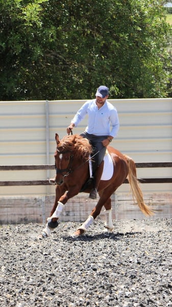 Lenny est un Lusitano-mix de 4 ans, monté en douceur depuis environ six mois. Il possède d'excellents allures de base, se montre très proche de l'humain et travaille toujours avec motivation. Nous pouvons l’envisager aussi bien comme partenaire de loisir fiable que pour la Working Equitation. N'hésitez pas à nous contacter si vous êtes intéressé. D’autres vidéos sont disponibles. Lieu : Portugal – un transport peut être organisé.