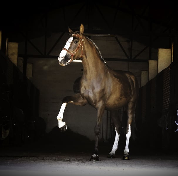 ✨ Außergewöhnliches Palomino-Talent – Präsenz, Kraft und Reitbarkeit ✨ Ein wirklich auffälliger Schokoladen-Palomino-Geländesohn, fast 5 Jahre alt, mit beeindruckender Größe von ca. 1,73 m, der Größe, Ausdruck und außergewöhnliche natürliche Fähigkeiten vereint. Dieses Pferd fällt sofort durch seine beeindruckenden Bewegungen auf, mit einer natürlichen aufwärtsgerichteten Gangart und einem hervorragend ausbalancierten, kraftvollen Galopp, der sowohl Qualität als auch Reitbarkeit bietet. Er zeigt exzellente Koordination, Elastizität und Präsenz. Neben seinen physischen Qualitäten ist sein Charakter einfach außergewöhnlich. Extrem freundlich, willig und zuverlässig ist er ein Pferd, das Vertrauen aufbaut und eine echte Partnerschaft mit seinem Reiter schafft. Für absolut jeden Reitertyp leicht zu handeln. Er ist bereits gut im Gelände erfahren und wurde in allen möglichen Umgebungen geritten: – Berge – Waldwege – Offene Landschaften – Strandritte Nichts bringt ihn aus der Ruhe – er bleibt ruhig, konzentriert und kooperativ, was ihn zu einem vertrauenswürdigen Partner in jeder Situation macht. Seine Einzigartigkeit unterstreicht er durch außergewöhnliche Abzeichen auf seinem Körper, die seine bereits beeindruckende Präsenz noch verstärken. ✨ Wichtige Highlights: 🐴 Palomino-Schokolade mit außergewöhnlicher Präsenz 🐴 Hervorragend ausbalancierter Galopp 🐴 Tremendous mover mit natürlichem aufwärtsgerichtetem Gleichgewicht 🐴 Beginn des spanischen Schritts 🐴 Sitz- und Seitengänge im Anfangsstadium (super intelligent) 🐴 Außergewöhnlich freundliches Wesen 🐴 Für jeden Reitertyp leicht zu handhaben 🐴 Erfahrung in allen Umgebungen (Berge, Wald, Strand) 🐴 Sicher und zuverlässig in jeder Situation 🐴 Einzigartige Abzeichen am ganzen Körper Eine seltene Kombination aus Größe, Bewegung, Intelligenz, Temperament und Schönheit – ein Pferd mit großem Potenzial für die Zukunft.