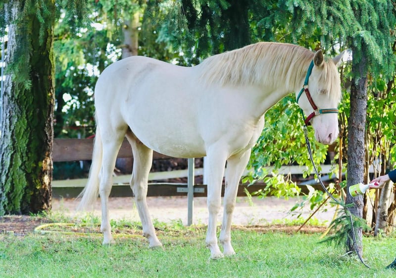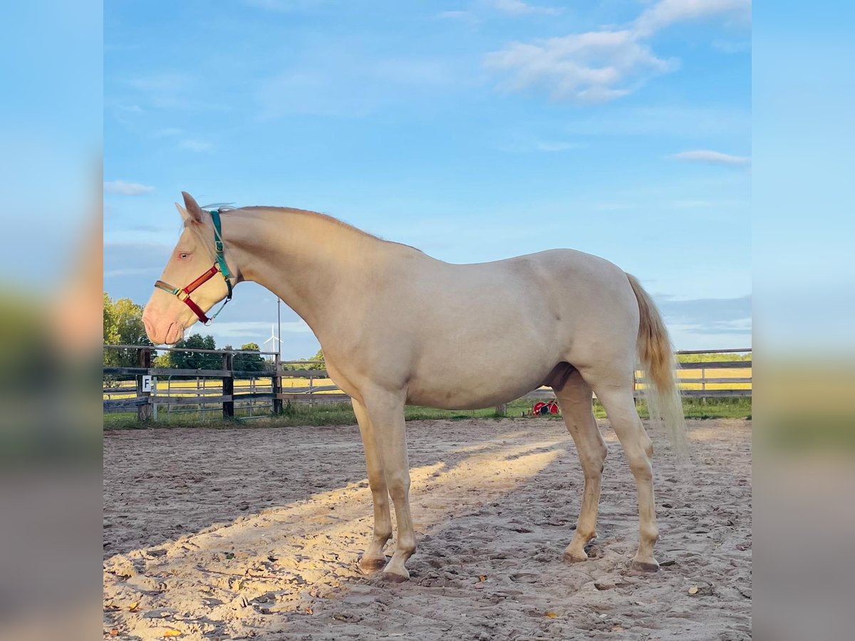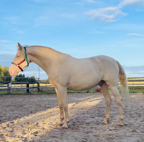 **Verkaufsanzeige: Lusitano-Wallach, Geburtsjahr 2021, Cremello, 165 cm** Zum Verkauf steht ein beeindruckender Lusitano-Wallach, geboren im Jahr 2021. Mit seinem eleganten Cremello-Fell und einer Stockhöhe von 165 cm vereint er typische Lusitano-Charakteristika mit einem außergewöhnlichen Erscheinungsbild. Der junge Wallach ist bereits gut im Training und zeigt sich im Bereich Working Equitation äußerst vielversprechend. Seine natürliche Bewegungsqualität, sein ausgeprägter Lernwille und seine freundliche, aufgeschlossene Art machen ihn zu einem idealen Partner für ambitionierte Reiter, die Wert auf Vielseitigkeit und Charakter legen. Der Lusitano ist gesund, gut erzogen und lässt sich sowohl im Gelände als auch im Dressur- und Working Equitation-Training sicher und zuverlässig reiten. Aufgrund seines angenehmen Temperaments und seiner hohen Bereitschaft, Neues zu lernen, eignet er sich hervorragend für Reiter, die einen zuverlässigen und vielseitigen Partner suchen. Bei Interesse oder für weitere Informationen stehe ich gerne zur Verfügung. Dieses außergewöhnliche Pferd wartet auf eine neue Herausforderung und einen engagierten Reiter, der seine Qualitäten zu schätzen weiß.
