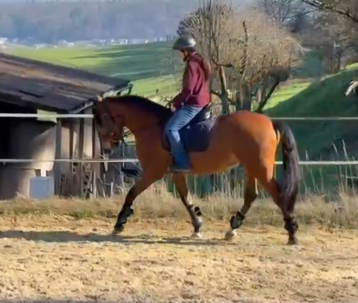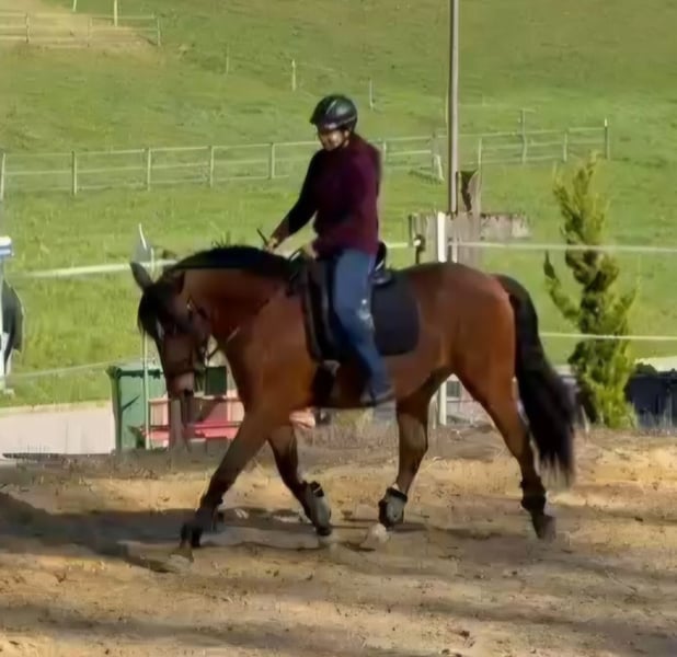 Zum Verkauf steht ein bildschöner, 7-jähriger Lusitano-Wallach (Kastration Juni 25) mit einem Stockmass von 1.60m, aus der Zucht von Fortunna Lusitanos, Portugal. Mit 3 1/2 Jahren wurde er in Portugal angeritten und es folgte eine solide Grundausbildung bis er im August 2025 in die Schweiz importiert wurde. Seit seinem Import hat er die nötige Zeit bekommen, sich an unser Klima und die neue Umgebung zu gewöhnen. In dieser Phase wurde intensiv Wert gelegt auf eine gute Basis am Boden. Er ist sicher in allen 3 Grundgangarten. Im Gelände zeigt er sich äusserst Nervenstark und meist unerschrocken, braucht jedoch eine klare und sichere Führung durch den Reiter! Aufgrund seines Temperaments und seiner Sensibilität ist er nicht für Anfänger geeignet und wird nur in erfahrene Hände abgegeben, die einen typvollen Lusitano zu schätzen wissen!