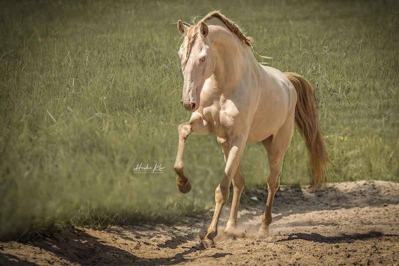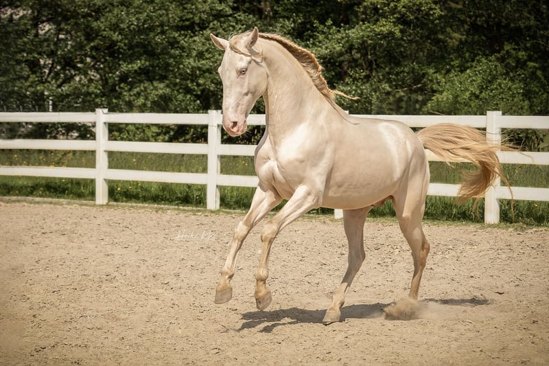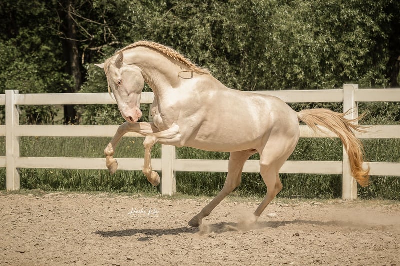 Con grande tristezza vendiamo il nostro bellissimo stallone Lusitano, Orpheu (*25.03.2018). Il suo colore speciale "Perlino" (con doppio gene cremello) gli conferisce un aspetto davvero unico e lo ha reso molto interessante anche per la nostra allevamento. Poiché Orpheu, a causa del suo carattere sensibile, ha avuto difficoltà con il passaggio tra l'uso della coperta e il lavoro sotto sella, abbiamo deciso nell'autunno dello scorso anno di lasciarlo riposare. Da allora ha trovato tranquillità e ha fatto grandi progressi anche sotto sella. Recentemente ha persino iniziato i primi passeggiate nei campi e nei prati!! Orpheu non è sicuramente un cavallo per principianti - il nuovo partner dovrebbe essere molto esperto nell'equitazione. Attualmente Orpheu si trova in una scuderia nell'Odenwald (vicino a Groß-Umstadt) ed è in addestramento completo presso un noto addestratore portoghese. Ulteriori foto, il pedigree, ecc. possono essere visualizzati sul nostro sito web https://www.lusitanos-zucht.de/ o su Instagram lusitanozucht.schonharting. Se interessati, è possibile fissare un appuntamento per conoscerlo a partire dal 01.05.