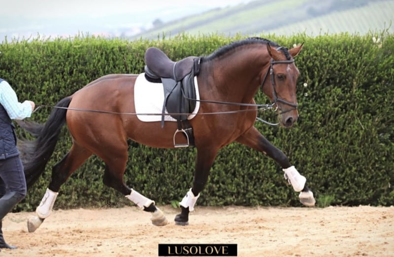Für alle die auf der Suche nach einem grossrahmigen Sportlusitano sind, aufgepasst! Notável do Vizo ist ein gekörter PSL Wallach, 8 Jahre alt, 1,68m groß und ist ausgestattet mit einer großartigen Mechanik. Er war in Profiberitt bei Mihai Maldea. Gleich beim ersten Turnier seines Lebens war er erfolgreich und hat sich sowohl in der Dressur als auch im Trail den 1. Platz gesichert. Der imposante Lusitano ist doppelt veranlagt und zeigt sich auch am Sprung äußerst talentiert. Notável ist seit Februar 2022 in Deutschland und hat einen Röntgentüv inklusive Rücken. Von Notável gibt es TK Samen, der beim Kauf mit erworben werden kann. Bitte Anfragen ausschließlich per Whatsapp unter 00491743326218