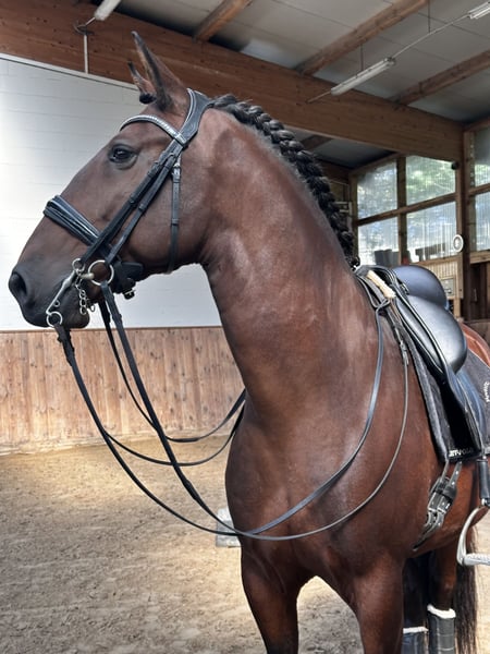 Top Lusitano Schoolmaster – Piaffe & Flying Changes – Suitable for Children and Amateur Riders A rare opportunity to acquire a highly trained Lusitano schoolmaster. This 9-year-old purebred Lusitano gelding, standing 1.64 m, is an exceptionally reliable partner and ideal for children, beginners, or ambitious amateur riders who want to learn from an experienced horse. He is trained up to Grand Prix level and demonstrates, among other movements: * Piaffe * Flying changes * Additional advanced dressage movements with ease The gelding has competition experience and has proven to be a dependable teacher horse. He is very safe, friendly, and absolutely reliable, making him perfect for beginners or ambitious amateurs eager to learn from an experienced partner. In addition to classical dressage, he is also trained in Working Equitation, highlighting his versatility and rideability. This Lusitano impresses with: * His exceptional temperament * His safety and reliability * His high-quality training ✔ Clear X-ray results available ✔ 100% well-behaved in handling A true master teacher, rarely found – ideal for riders seeking a **safe, experienced, and well-trained horse**. 📍 Location: Berlin, Germany 🚚 Transport can be arranged