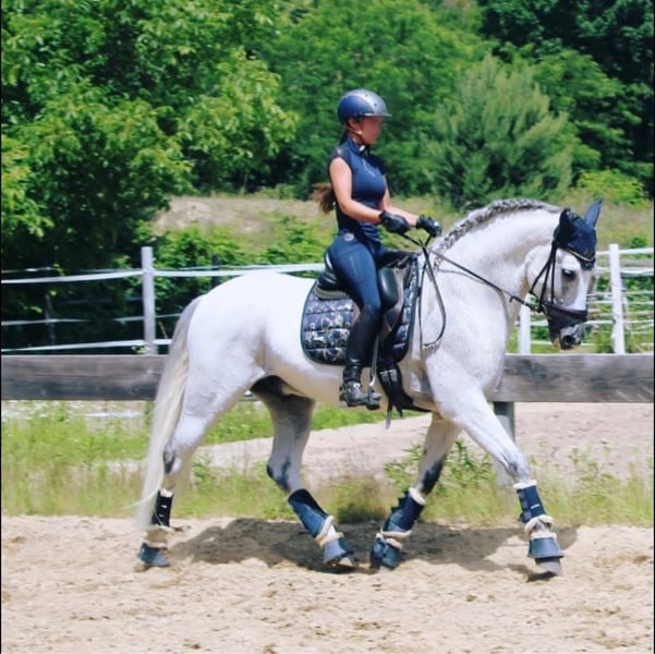 A true dream horse—a 9-year-old Lusitano gelding, approximately 1.64 m tall, that impresses with his quality, rideability, and training level. This horse captivates not only with his appearance but also with his willingness to perform and reliability. He has been correctly trained and presented in competitions. Currently, he confidently masters: – Flying changes (confirmed, easy & reliable) – Travers and all lateral movements – High collection ability – Groundwork compliments – Spanish walk He is sensitive to aids, clear-minded, and always controllable. Under saddle, he demonstrates great confidence, honesty, and rideability. An equine partner with excellent rideability that inspires trust in his rider and presents himself confidently even in new situations. He holds a green passport (without pedigree documentation) and is registered as a competition horse in the equine passport. This makes him an ideal choice for ambitious riders seeking a well-trained dressage horse with exceptional presence. Beauty, brains, and training—the complete package. A real eye-catcher, a dependable partner, and a horse that brings daily joy. Sale only to the best hands due to lack of time.