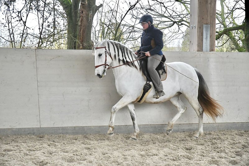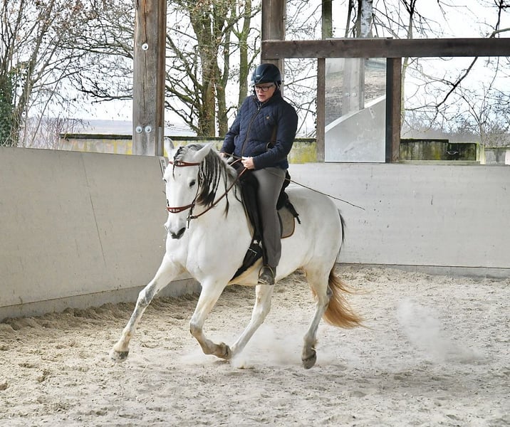 Aus Altersgründen suche ich für meine extrem ausdrucksstarke und mächtige Lusitanostute ein neues 5Sterne Zuhause. Li verfügt über drei sehr raumgreifende und schwungvolle Grundgangarten mit richtig Wumms. Sie ist reell und solide ausgebildet, beherrscht die Seitengänge in Schritt und Trab, hat eine gute Piaffe und eine weiche Passage. Sie hat ihr ganzes Leben in Offenstall/Weidehaltung verbracht, sie ist rangniedrig in der Herde und hat ein tadelloses Sozialverhalten. Sie wird nur in allerbeste Hände abgegeben.