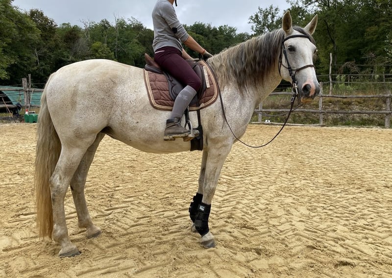 Alizée de La Goudelie is een zachte, goed gebouwde merrie, 1.65m groot, die werkt in de arena en buiten in de lage school (drie gangen, tweesporen oefeningen, boerderij tot boerderij). Opgeleid met een basis in ethologie. Leeft in een kudde met haar zussen en soortgenoten in de wei met schuilstal. Tandarts OK, twee of drie keer per jaar ontwormd. Zijn vader was gekwalificeerd in dressuur op Saint Georges niveau en in springen (zie foto op de harasdelagoudelie.com website). Zijn moeder heeft Veiga-bloed in haar afstamming, wat hem levendigheid geeft met een vrij stabiel karakter. De getoonde prijs is exclusief BTW en in Frankrijk moet een BTW van 10% worden toegevoegd als de verkoop voor fokdoeleinden is, of 20% als de verkoop voor vrijetijdsdoeleinden is.