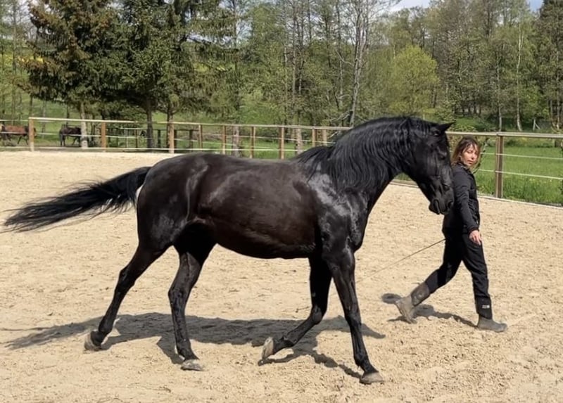 Lusitano Rappstute – in liebevolle Hände abzugeben Wir suchen für unsere wunderschöne Lusitano-Stute (Rappstute, ohne Abzeichen, mit Papieren) ein passendes Zuhause. Sie wird nur schweren Herzens abgegeben, da wir ihr aufgrund der Haltungsbedingungen am eigenen Hof (ganzjährige Weidehaltung in der Gruppe) nicht gerecht werden können. Die Stute benötigt eingeschränkte Weidezeiten, sowie Heu bester Qualität oder besser noch Heulage oder bedampftes/ gewässertes Heu. Unter diesen Bedingungen ist sie topfit und kerngesund. Wird darauf nicht geachtet, reagiert sie empfindlich (Heustauballergie/ EMS). Offenstallhaltung mit angepasstem Fütterungsmanagement ist daher Voraussetzung. Charakter & Ausbildung: • Sehr sensibel und superfein → kein Anfängerpferd • Liebt Bodenarbeit und ruhige Geländeritte Wir wünschen uns für sie: Einen Platz bei erfahrenen, einfühlsamen Pferdemenschen, als Zuchtstute oder Beitstellpferd, der/ die mit ihrer Sensibilität umgehen können und ihr die notwendige Haltung und Zuwendung bieten können. Abgabe nur in wirklich geeignete Hände und in bestes Zuhause.