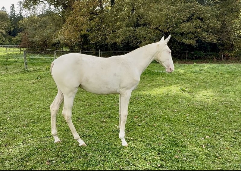 ✨ Unfortunately, we can't keep everyone... ✨ We are offering V-Pearl for sale, a stunning cream filly with blue eyes, born in March 2025. She is by Nopal out of Mariolas d’Al Baizir, and V-Pearl shows great potential: a harmonious build, elegant presence, and a curious, human-oriented temperament. She lives in the paddock with other horses, is handled regularly, and is up to date with all vaccinations, microchipping, and deworming. She is already over 1.35 m (approximately 13.3 hh). 📍Viewable in Guérande 💛 Rare color