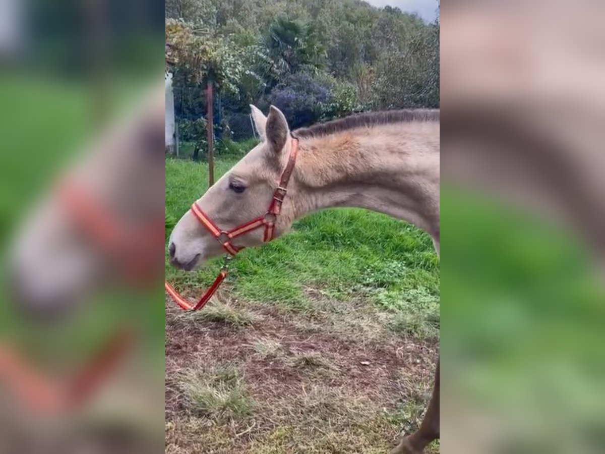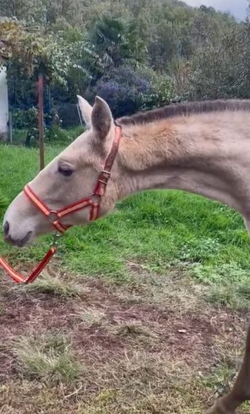 Abril ist eine 11 Monate junge Cruzado-Stute mit barockem Typ. Aktuell misst sie ca. 135 cm und wird voraussichtlich nicht größer als etwa 160 cm. Sie ist sehr verschmust, menschenbezogen und freundlich. Im Umgang zeigt sie sich offen, ruhig und neugierig. Sie sucht gerne Nähe und fühlt sich schnell wohl. Optisch hat Abril einen schönen, klaren Kopf mit leichter Blesse, großen hellen Augen sowie braunen Beinen und Mähne ( Sie trägt 1 Pearl Gen ). Insgesamt wirkt sie harmonisch und angenehm im Ausdruck. ( kräftige Beine + barocker Körperbau ) 📄 Papiere: Eine CDE-Eintragung ist gegen Aufpreis möglich. Abril ist eine unkomplizierte junge Stute mit gutem Charakter und schöner Ausstrahlung, die sich für ein liebevolles Zuhause und eine spätere Ausbildung eignet.