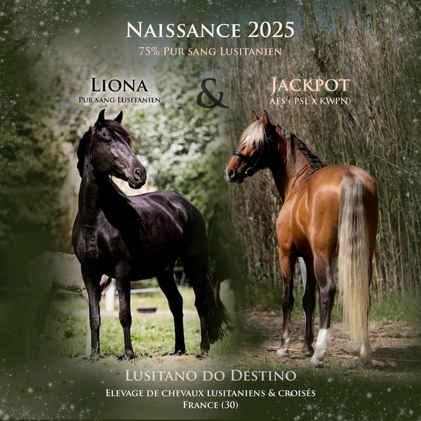 Nous proposons à la vente cette magnifique jument croisée Lusitanien, née en 2025, au tempérament doux et volontaire. D’une stature élégante de 160 cm, elle allie finesse et présence, idéale pour une cavalière ou un cavalier recherchant un cheval de dressage prometteur et polyvalent. Issue d’une mère pur sang Lusitanienne approuvée et d’un père lusitanien x kwpn. Le père a été primé en CL dressage 4 ans avec 77% reprise finale. N’hésitez pas à nous contacter pour plus d’informations ou organiser une visite afin de découvrir cette belle pouliche.