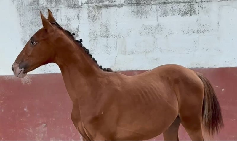 Striking 1-year-old Filly with Exceptional Bloodlines Born in September 2024, Ulaya is a beautifully marked leopard-spotted chestnut filly with an outstanding pedigree rooted in top sport horse lines. Her grandsire, Dragon, is among Poland’s premier breeding stallions, while her sire, Zeplin do Top, is a renowned Lusitano known for producing high-quality dressage and working equitation horses. Ulaya has a lovely temperament—calm, responsive, and quick to learn. She is halter trained, stands quietly for both the farrier and the vet, lunges well, and is confidently handled in day-to-day routines. All her paperwork and vaccinations are fully up to date. Correctly and thoughtfully started from the beginning, Ulaya promises a bright future—whether in sport or as a valuable addition to a breeding program. Please WhatsApp to contact me
