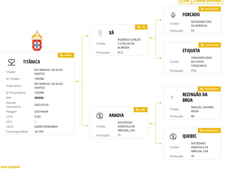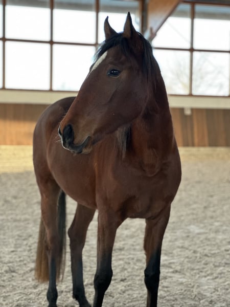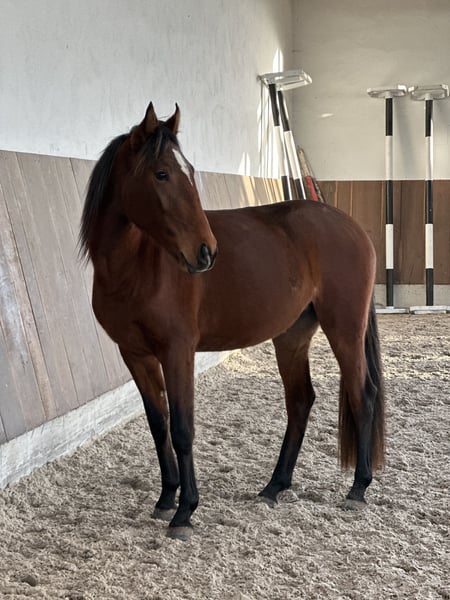 Onze prachtige bruine Titânica is geboren in mei 2023 en is een levendig, leergierig en oplettend paard. Ze meet momenteel 150 cm. De geschatte eindmaat is 155 cm. Titânica leeft momenteel in een kudde met andere merries. Ze is braaf bij de hoefsmid en laat alle vier haar hoeven netjes behandelen. Ze houdt ervan om gepoetst en geknuffeld te worden. Titânica gaat graag wandelen en toont ook in nieuwe situaties nieuwsgierigheid. Vanwege een verkleining van de kudde zoeken wij voor Titânica haar gouden eigenaar. Ze wil de wereld op een paardvriendelijke en liefdevolle manier leren kennen. Het karakter van Lusitano-paarden is uniek. Ze zijn ongelooflijk intelligent en willen graag gefallen. Ze genieten van samenwerking met hun mens, vooral als ze een gemeenschappelijke taal spreken. Vanwege haar afstamming kan Titânica ook interessant zijn voor de fokkerij.