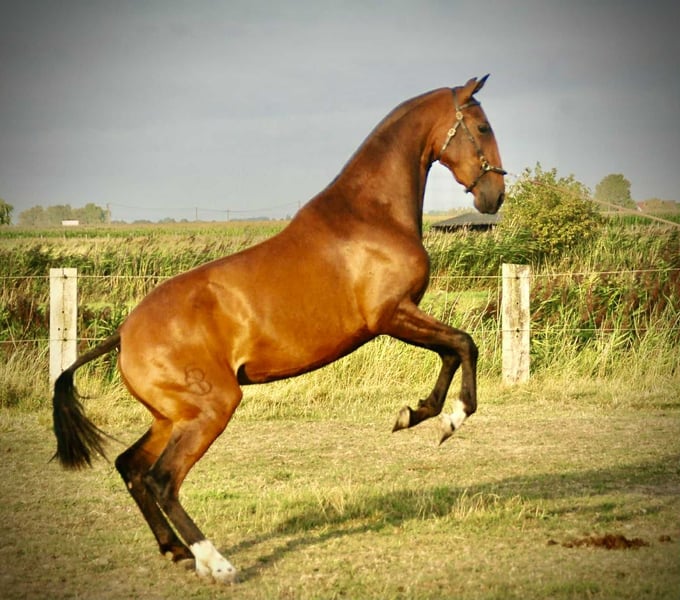 Tirana – Veelbelovende 2-jarige Lusitano Merrie | Kleindochter van Olympische Hengst Escorial Tirana is een elegante 2-jarige Lusitano merrie met een uitzonderlijk temperament en een zeer typische, expressieve bouw. Ze toont drie uitstekende gangen en is al goed gehanteerd: gemakkelijk vast te maken, geeft haar voeten, geïntroduceerd in longeren, ontwormd, gevaccineerd en volledig röntgenologisch onderzocht. Met haar natuurlijke elegantie en beweging is Tirana een topkandidaat voor Dressuur of Working Equitation. Dankzij haar uitstekende afstamming – als kleindochter van de Olympische hengst Escorial – biedt ze ook groot potentieel als fokmerrie.