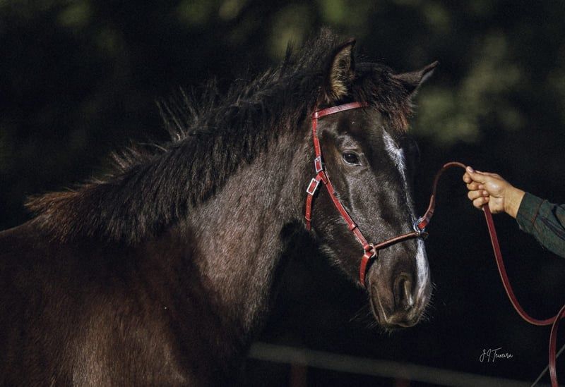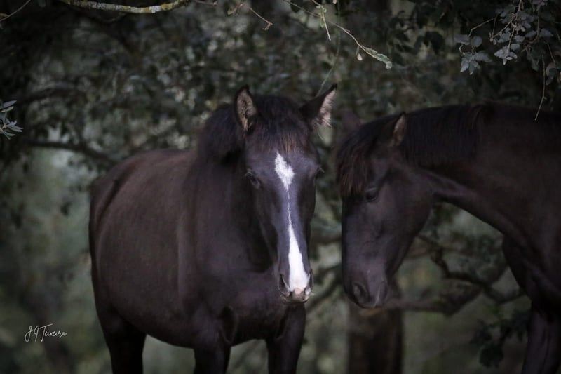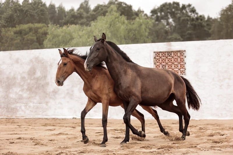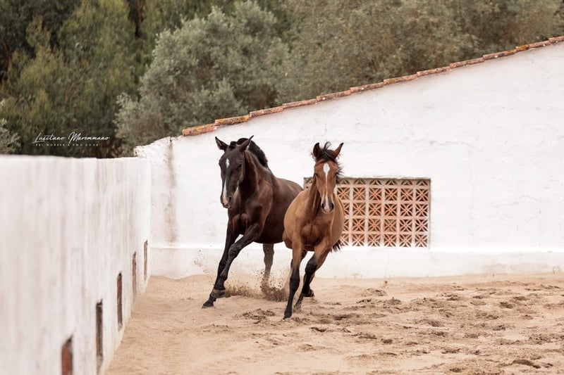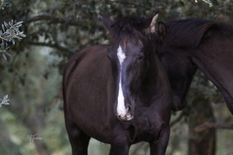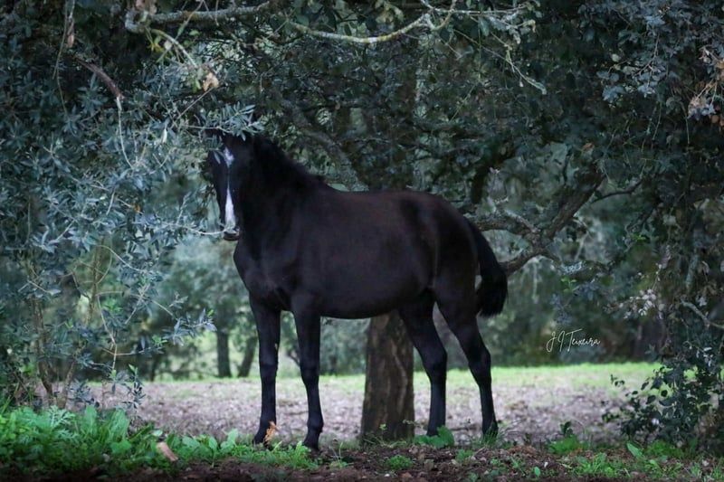 Charmante jonge merrie met veel potentieel - Ras: Lusitano - Geslacht: Merrie - Geboortejaar: 2023 - Kleur: zwart - Schofthoogte: 160 cm, geschatte eindhoogte We bieden een uitzonderlijke Lusitano merrie te koop aan die geboren is in 2023. Deze jonge dame maakt niet alleen indruk met haar elegante verschijning als zwart paard met het crème-gen, maar ook met haar indrukwekkende potentieel. Een andere blikvanger is haar afstamming, met onder andere de beroemde grootvader ESCORIAL. TINTOREIRA is leergierig en getalenteerd, wat haar een veelbelovende kandidaat maakt voor toekomstige eigenaren. Ze zal later veelzijdig zijn en TINTOREIRA is ook zeer interessant voor de fokkerij. De jonge merrie wordt momenteel opgefokt in een voor haar soort geschikte omgeving waar ze in alle rust kan groeien en het beste voer krijgt. Het spreekt voor zich dat ze zeer compatibel is met oudere en jongere merries in de kudde. Ik kan je meer foto's en video's sturen als je geïnteresseerd bent.